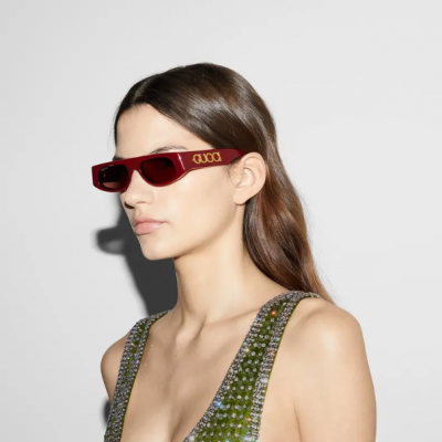 这款酒红色太阳眼镜甄选闪耀醋纤材质打造而成。镜腿缀饰金色调手写体Gucci细节,令几何造型镜框更添魅力,纯棕色镜片则令整个设计愈发亮眼。