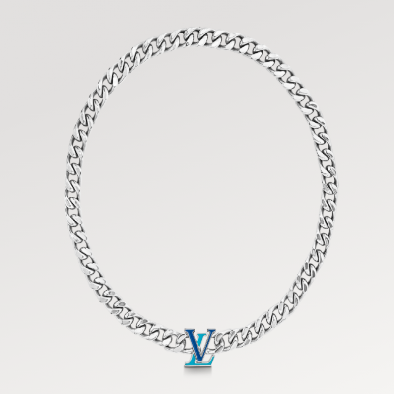 本款LV Chain項鍊將粗獷鏈環首尾相連,通過珐琅LV字母銜接,令經典元素在摩登設計中迸發勃勃生機。