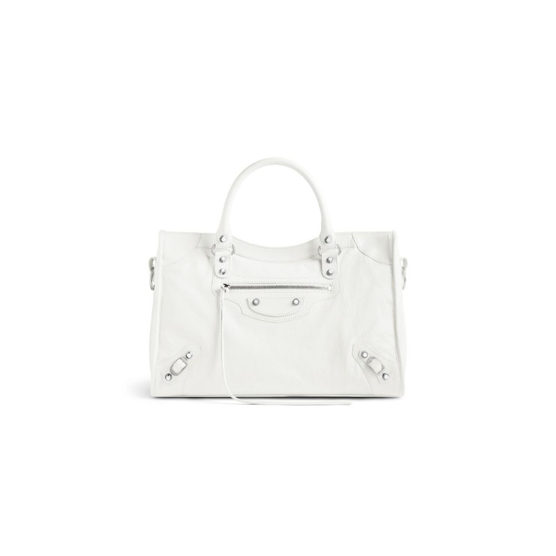 Le City白色细纹羊皮革中号手袋,饰以闪亮银色金属配件