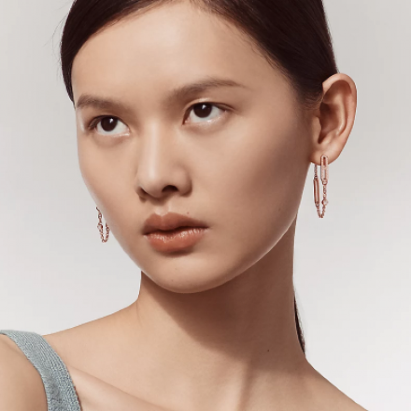 玫瑰金鑲鑽耳環。