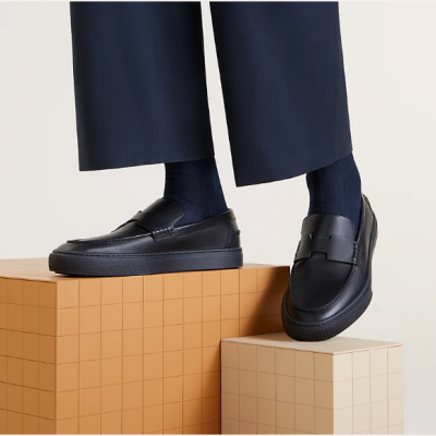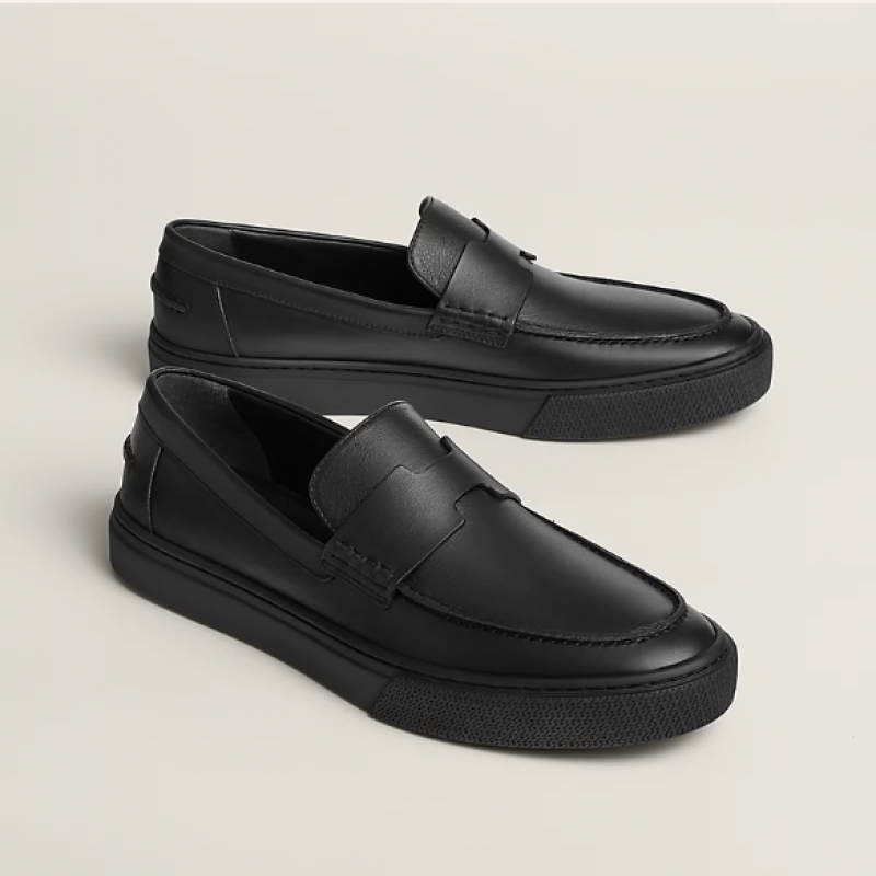 小牛皮免繫帶運動鞋,經典「H」型鞋面細節。